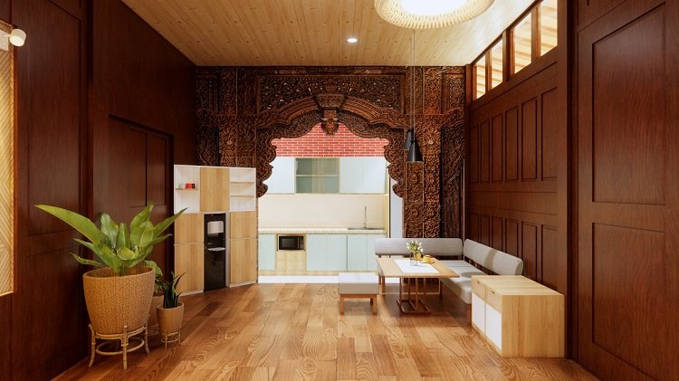 Dihiasi furnitur kayu, ukiran, dan dekorasi klasik. Suasananya lebih hangat dan mengundang rasa kekeluargaan.