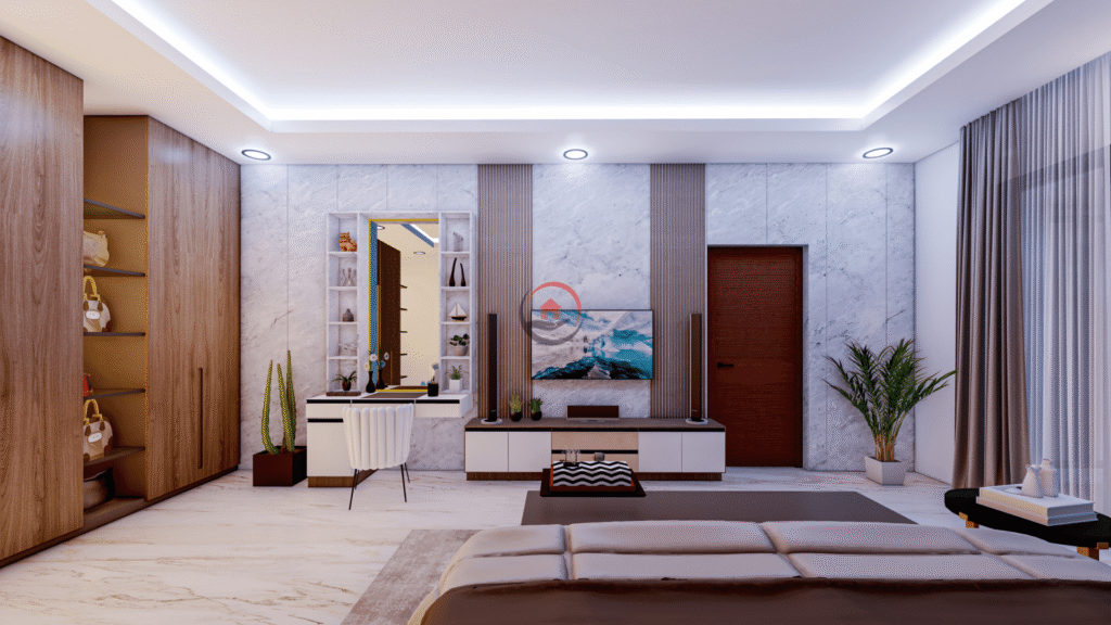 Warna adalah elemen paling berpengaruh dalam desain interior. Untuk gaya minimalis modern, palet warna netral seperti putih, abu-abu, beige, dan krem sering menjadi pilihan utama. Warna-warna ini memberi kesan luas, bersih, serta mampu memantulkan cahaya alami dengan baik. Agar tidak terkesan monoton, bisa ditambahkan aksen warna hangat atau elemen dekorasi kecil dengan tone berani seperti hijau daun, navy, atau bahkan hitam.