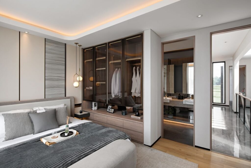 Untuk kamar sempit, built-in dengan pintu geser sangat ideal. Untuk rumah besar, walk-in closet bisa jadi investasi jangka panjang. - Pertimbangkan Material